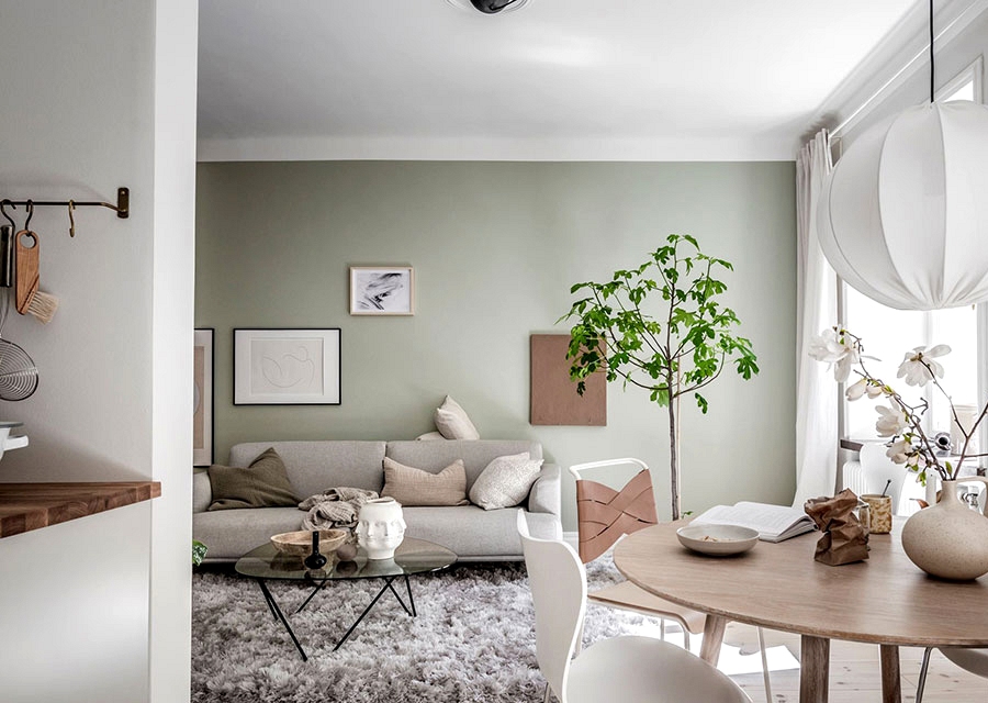 Finances residence with moody darkish inexperienced kitchen in Goteborg (70 sqm)